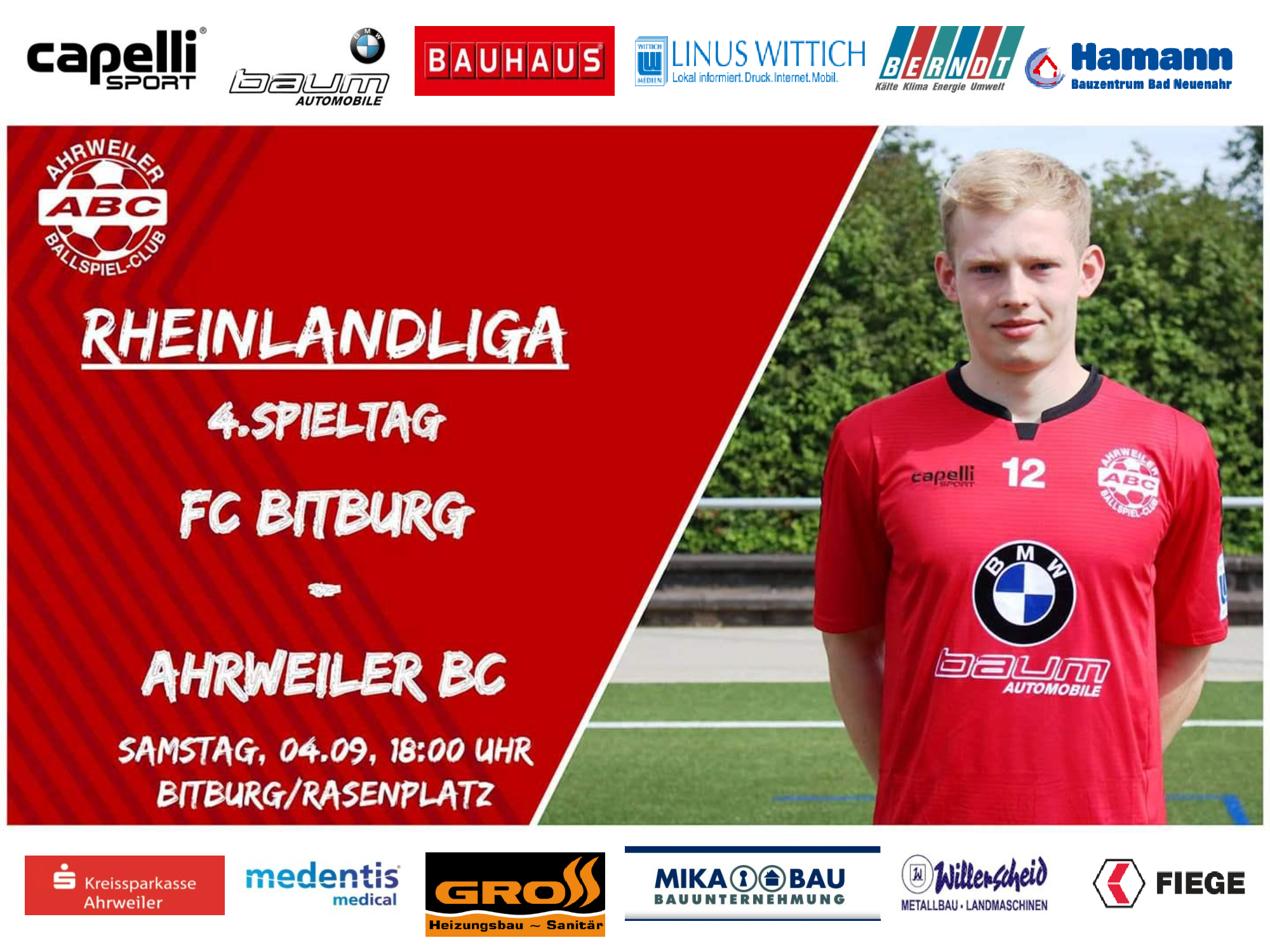 Am morgigen Samstag bestreitet der Ahrweiler BC beim FC Bitburg sein Auswärtsspiel des vierten Spieltags der Rheinlandliga. Das Team von ABC-Cheftrainer Andreas …