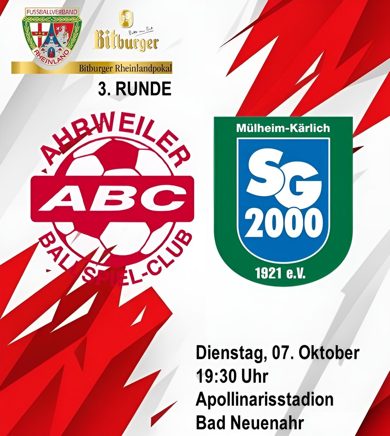 Ein Abend, wie ihn Fußballfreunde lieben: Am Dienstag, den 7. Oktober, trifft der Ahrweiler BC im Apollinarisstadion auf die SG Mülheim-Kärlich – …