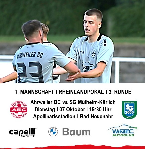 Der Spieltermin steht fest! In der 3. Runde des Rheinlandpokals empfängt der Ahrweiler BC die SG 2000 Mülheim-Kärlich. 📅 Dienstag, 07. Oktober …